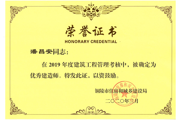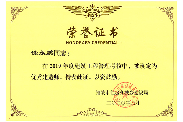 • 吳志停工程質(zhì)量優(yōu)秀工作管理者