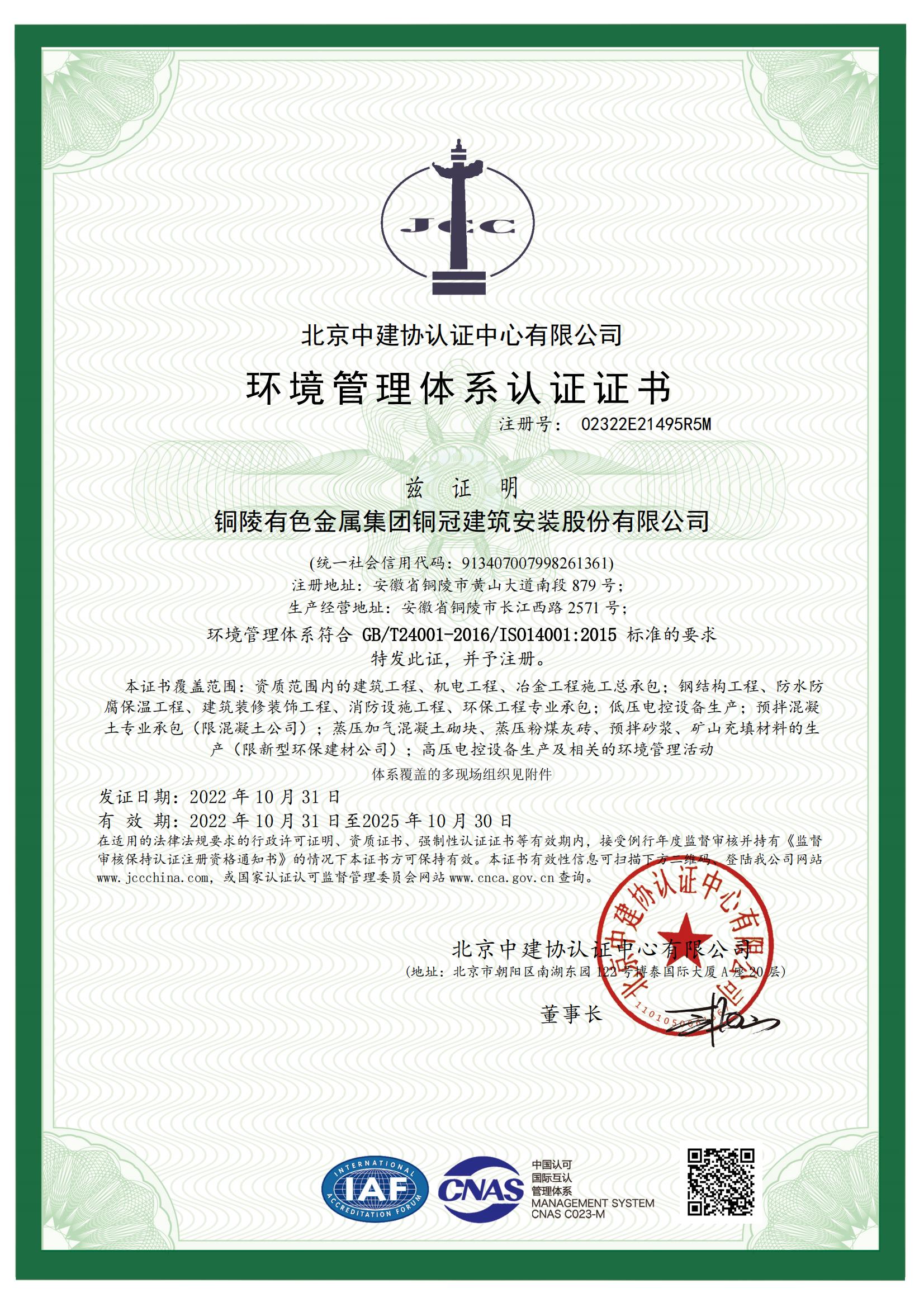 • 環(huán)境管理體系認(rèn)證證書(shū)